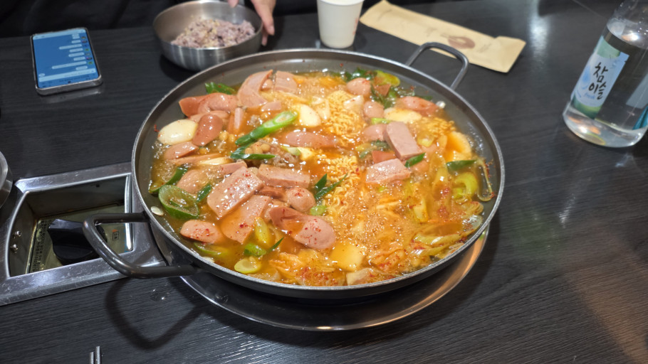 오늘 점심은 회사 근처에 있는 모박사 부대찌개에 다녀왔습니다. 부대전골을 주문했는데, 국물이 어찌나 얼큰하고 칼칼한지 속이 확 풀리는 기분이었어요.
