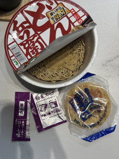일본 여행 가서 사온 유명한 튀김 소바 먹어봤어요 국물은 그 유부우동이랑 비슷한 거 같고 면이랑 토핑이 달라요 용기에 쓰여있는 조리법대로 했더니 면도 딱 좋고 튀김도 눅눅하지 않게 먹었어요! 기념품으로 사올만하네요 맛있어요 컵라면인데 튀김 퀄이 높아서 놀랐어요!!