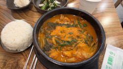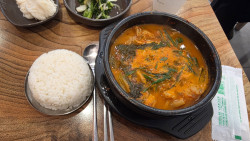 뚝배기에 담긴 얼큰해서 좋았고 고추장이나 고춧가루가 듬뿍 들어간 듯한 빨간 국물에 푸짐하게 올라간 우거지나 채소가 깊은 맛있었습니다 나중에 꼭 한번 먹어보세요!!!