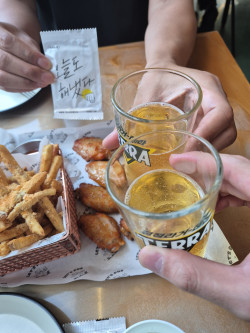 간단하게 술 한잔 마시고, 이야기 나누기 너무 좋아요~ 감자튀김은 일반으로 윙봉으로 시켜서 먹었는데 개인적으로 적게 먹는 사람 기준으로 충분했어요!