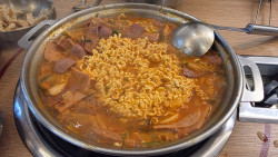마곡역 근처에 있는 부대찌개 전문점인데 맛도 워낙 좋고 반찬들도 괜찮고(사진에는 없지만 어묵볶음, 콩나물무침, 백김치가 나옴) 기본 밥이 나오면 계란 후라이도 한개 올려서 같이 나오는 것도 좋고 무엇보다 밥 + 라면사리 무제한 이라 배고플때 정말 배터지게 먹을 수 있어서 갈 때마다 기분 좋게 먹고 오는 가게! 추가로 부대찌개 10,000원, 부대전골 11,000원 인데 무조건 부대전골을 먹는것을 추천함! 부대전골이 양도 많고 햄종류도 많아서 1,000원 차이인데 그 차이가 생각보다 많이나서 부대전골 추천ㅇㅅㅇb