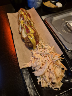오뎅이 2인 세트로 17,000원으로 가성비가 좋습니다, 특히! 샐러드 핫도그가 너무맛있어요 pc방에서 시켜먹는 맛이에요 닭껍질튀김은 튀기다가 깜빡하고 급하게 꺼낸맛이여서 아쉬워요🥲