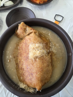 새로 동네에 오픈했길래 맛있어 보여서 가보니 이미 자리는 만석이고 다른 메뉴는 전부 품절이길래 기본 누룽지 삼계탕 을 시켜 봤는데 맛은 나쁘지 않으나 뚝배기 재질이 플라스틱 느낌에 온도도 그렇게 뜨거운 느낌은 아니다 보니 별은 하나 뺏음