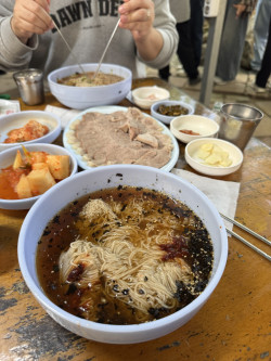 부여에 방문한다면 이 곳에 반드시 방문하길 !!! 새콤달콤한 막국수를 수육에 싸먹는 ㅠㅠ 최고 !!!!