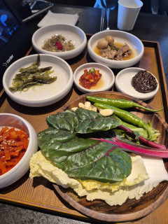 점심 1인 11,000원에 다양한 반찬과 제육, 쌈 채소까지 나오고 전체적으로 구성이 좋아요😋 다만 인원이 많아져도 된장찌개 양은 비슷한 듯해요ㅠ 그래도 가성비가 좋아서 가게 안에 손님은 만석이였어요👍