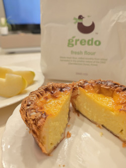 파운드그레도 에그타르트🥧✨ 한입 베어 물면 바삭한 결에 부드러운 커스터드가 퍼져 너무 고소해요! 달달함도 딱 적당해서 커피랑 잘 어울리고 무엇보다 가격대비 크기가 커서 만족스러웠어요