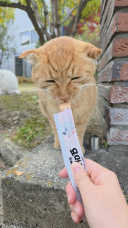 홈플러스에서 1+1 행사로 구매한 묘마카세 츄르 회사 점심시간에 길냥이 만나면 주는데 맛있게 잘 먹네요 가성비 좋게 구매했어요